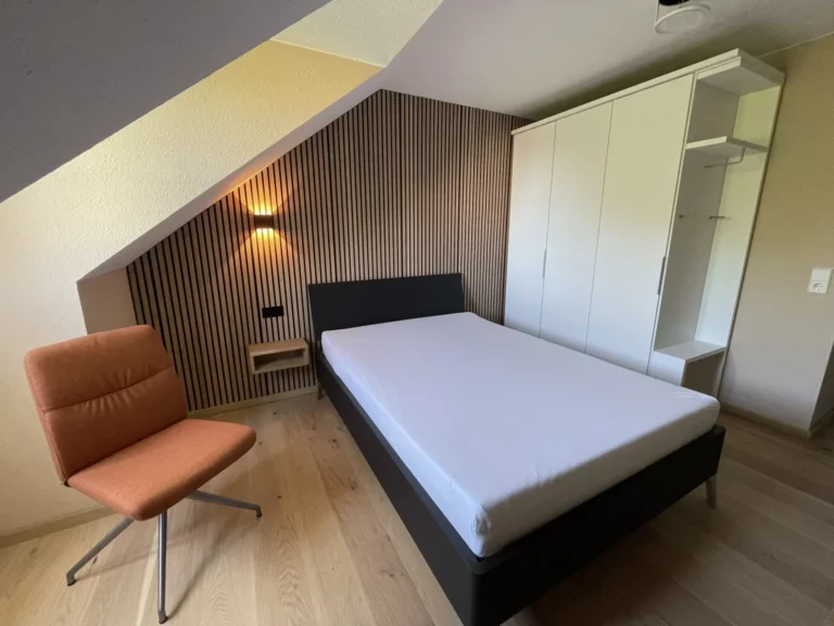 Umfassende Modernisierung mit neuer Bodengestaltung, gespachtelten und frisch gestrichenen Wänden, sowie erneuerten Dachfenstern für mehr Licht und Raumwirkung.